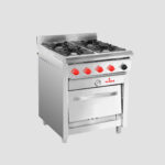- Con un diseño innovador, la estufa industrial gourmet PRGE-402 F tiene una estructura fabricada en acero con un acabado de pintura epoxi.